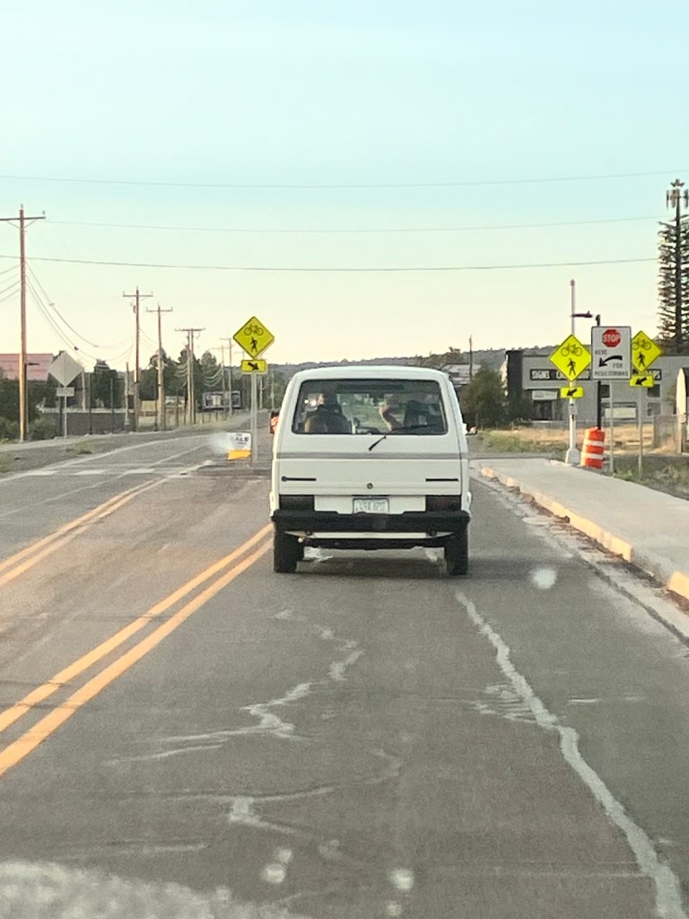 Other than that, the trip was nice. Went to Savers (a thrift store in Flagstaff) and got a new blanket for the bed. Oh wow is that thing soft. And a new overnight bag. I’m super stoked about that. It has a compartment separate from the clothes so my running shoes and Vans and Berks have a place to stay and not be with the clothes! That’s exciting! Thomas got some jackstands. It was rainy and beautiful and I remarked as we went through Holbrook, it’s such a lovely day. All dark and dreary and gray. Oh. I’m loved it!