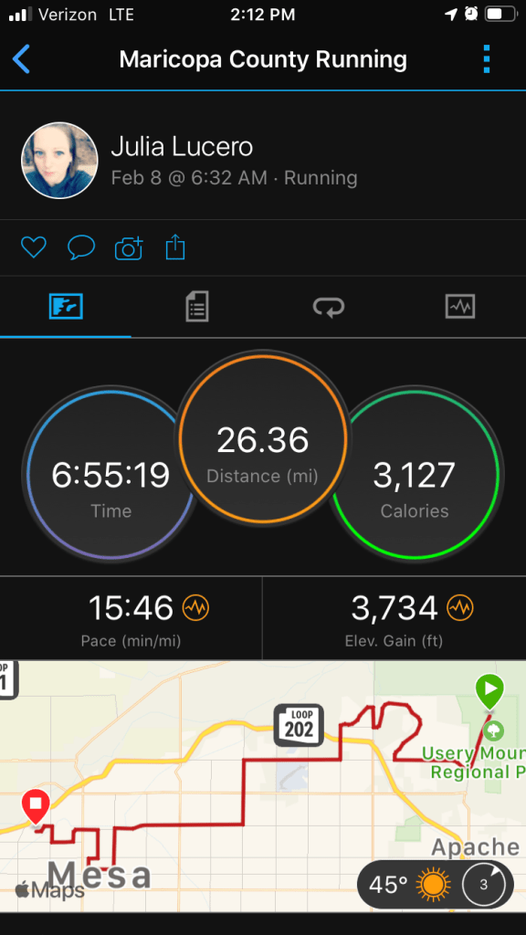 Next Monday, training begins. It’s a couch to 26.2 miles program and I feel like I am really trying to go for the couch part of the program so I know that I have really exceeded my own expectations with this run. I know I can do it, will be lots of fun sweating in the Arizona heat training. Good thing I just got a new 3 liter water backpack. I’m stokedππ 3 Liters!!!! Can you imagine? That’s like having more than enough water, but, we shall see. The real test will be one of the trail runs I know are coming up in the summer for me and the dog. She wastes a lot of water which usually means not enough for me, but, this new bag could be a game changer!!